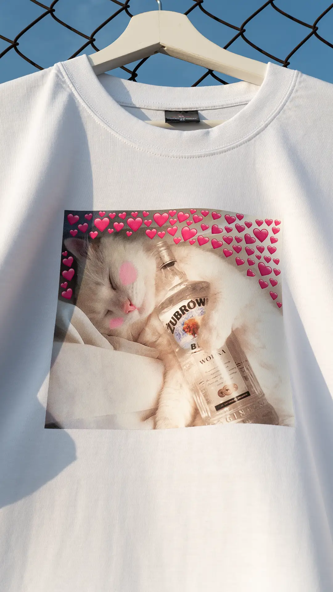 Do każdej koszulki GRATIS magnes Walentynkowy Kot Krzysiu z wódką 6x6cm